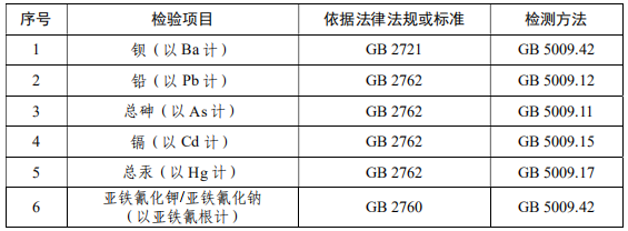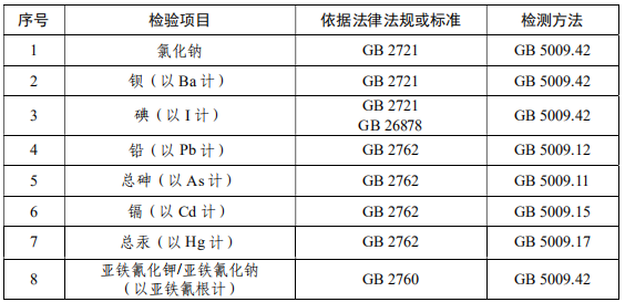 食用鹽抽檢項(xiàng)目: